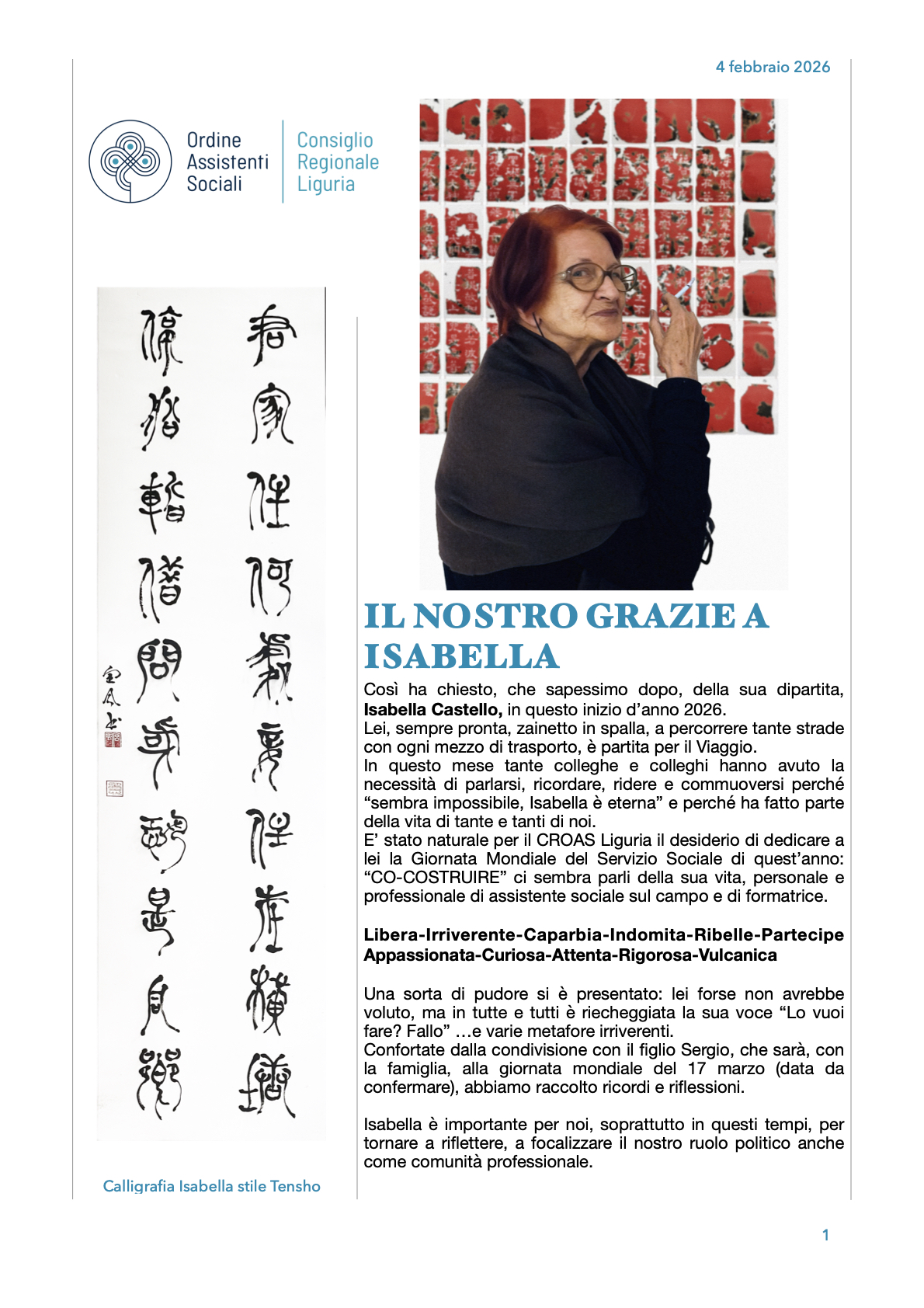 Comunichiamo alle e agli iscritte/i che, con delibera n. 316 del 13/12/2025, il Croas Liguria ha costituito le Commissioni Consiliari e i Gruppi di Lavoro per l’anno 2026.
