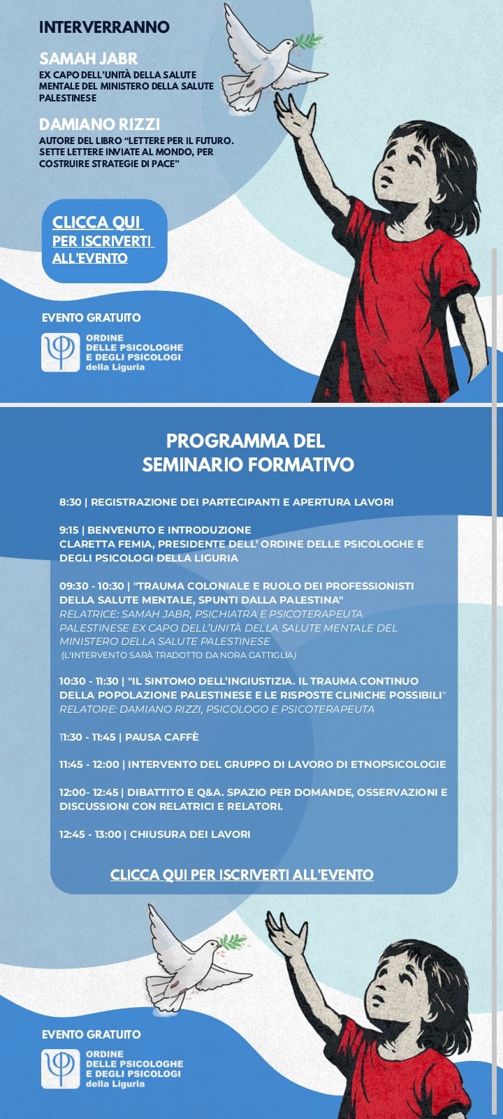 Iscrizioni sul sito Ordine degli Psicologi della Liguria.