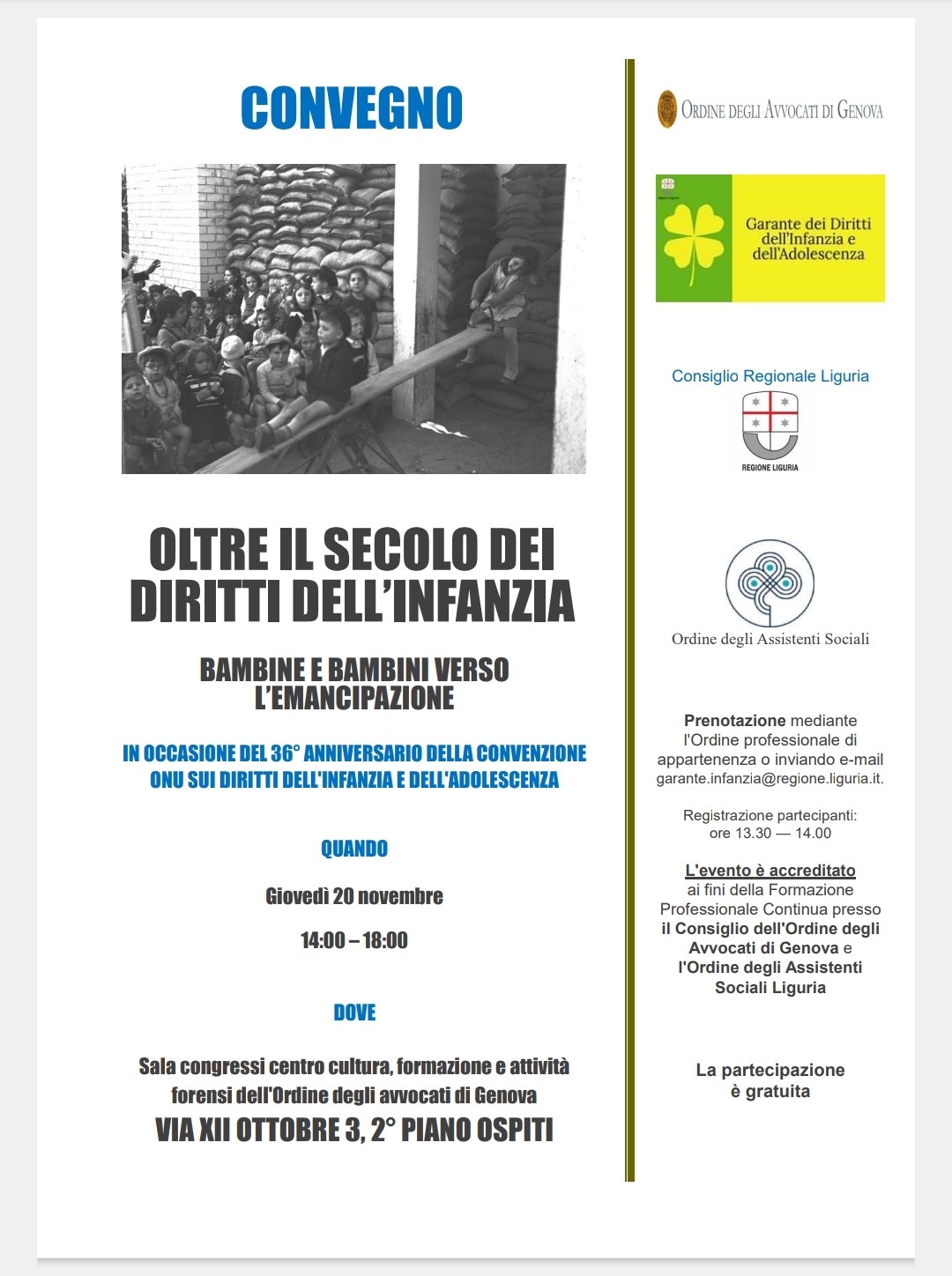 Il 20 novembre 2025, in occasione dell’anniversario della Carta dei diritti dei fanciulli e dei ragazzi, il CROAS Liguria parteciperà alla Giornata di studio organizzata dall’Ufficio del Garante regionale per l’Infanzia e l’Adolescenza.