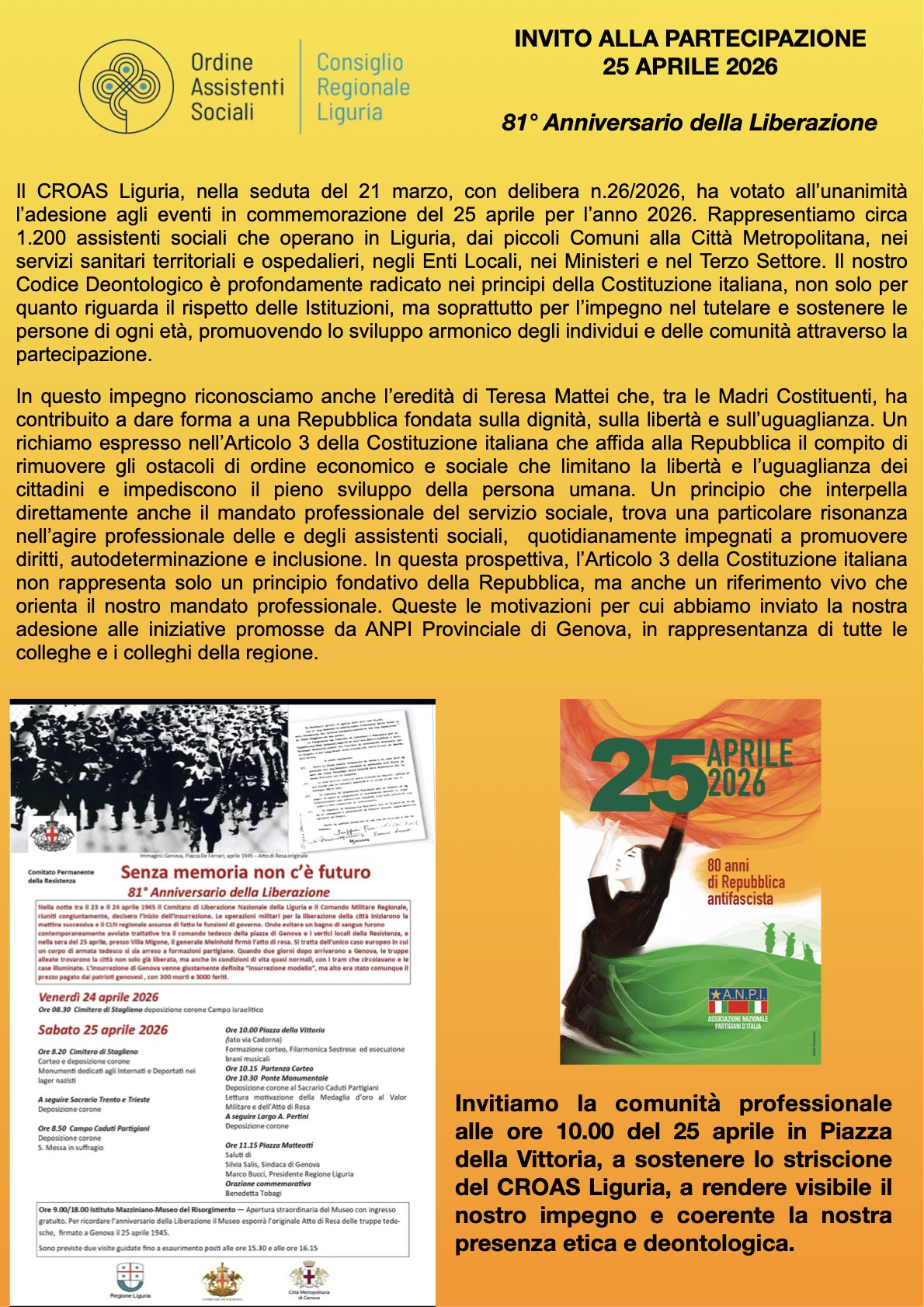 si comunica che l’Agenzia delle Entrate ha erroneamente indicato come termine per il pagamento della quota annuale di iscrizione all’Ordine degli Assistenti Sociali della Liguria la data del 30 aprile 2026, anziché il 31 maggio 2026, come concordato con gli uffici dell’Ordine.