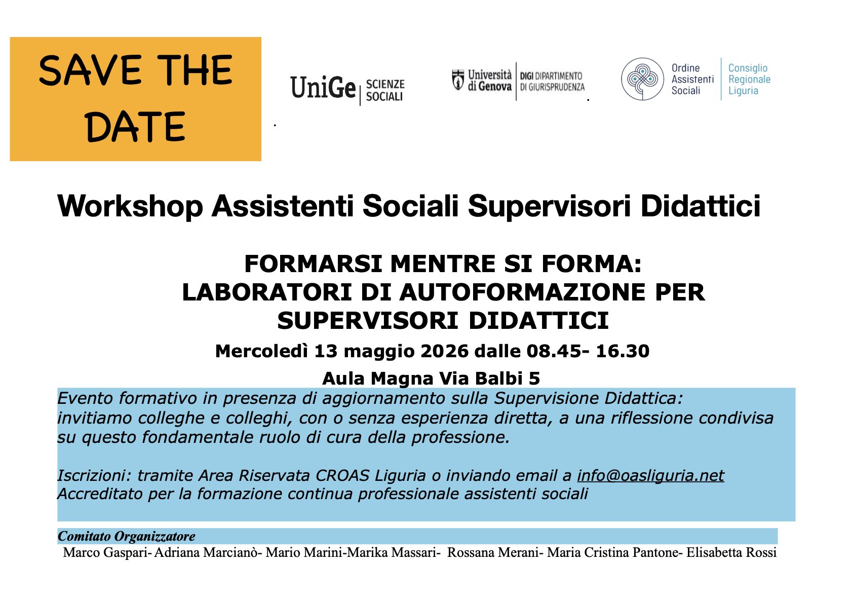 Sono aperte le iscrizioni al WSWD - L'evento è presente nel catalogo eventi del CROAS LIGURIA alla voce FORMAZIONE - ISCRIZIONE AGLI EVENTI - MESE DI MARZO 2026